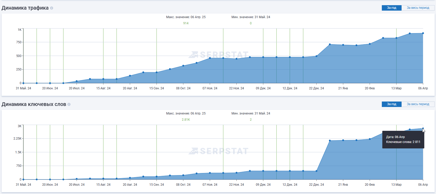 — Статистика по увеличению количества ссылок за месяц